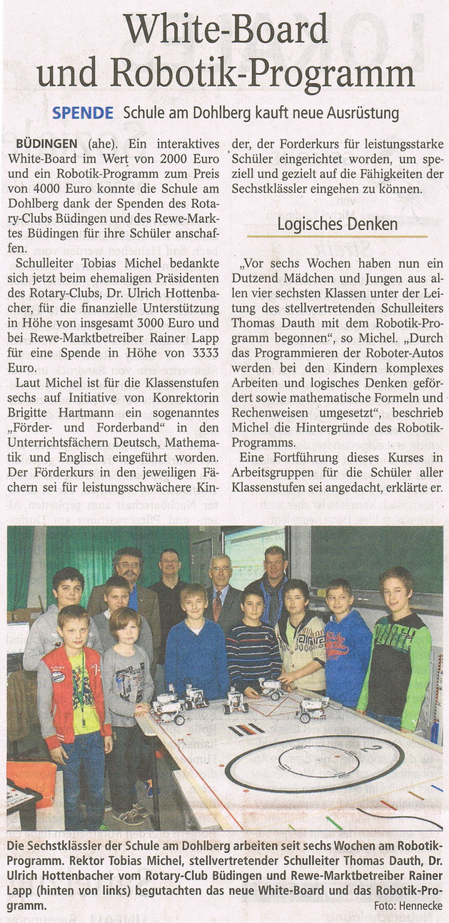 Traditionell startete auch diesmal wieder zu Beginn des Schuljahres 2013 ein Wettbewerb, um mit den neugebildeten Haupt- und Realschulklassen Mitgliederneuzugänge für den Förderverein der Büdinger Schule am Dohlberg zu gewinnen.